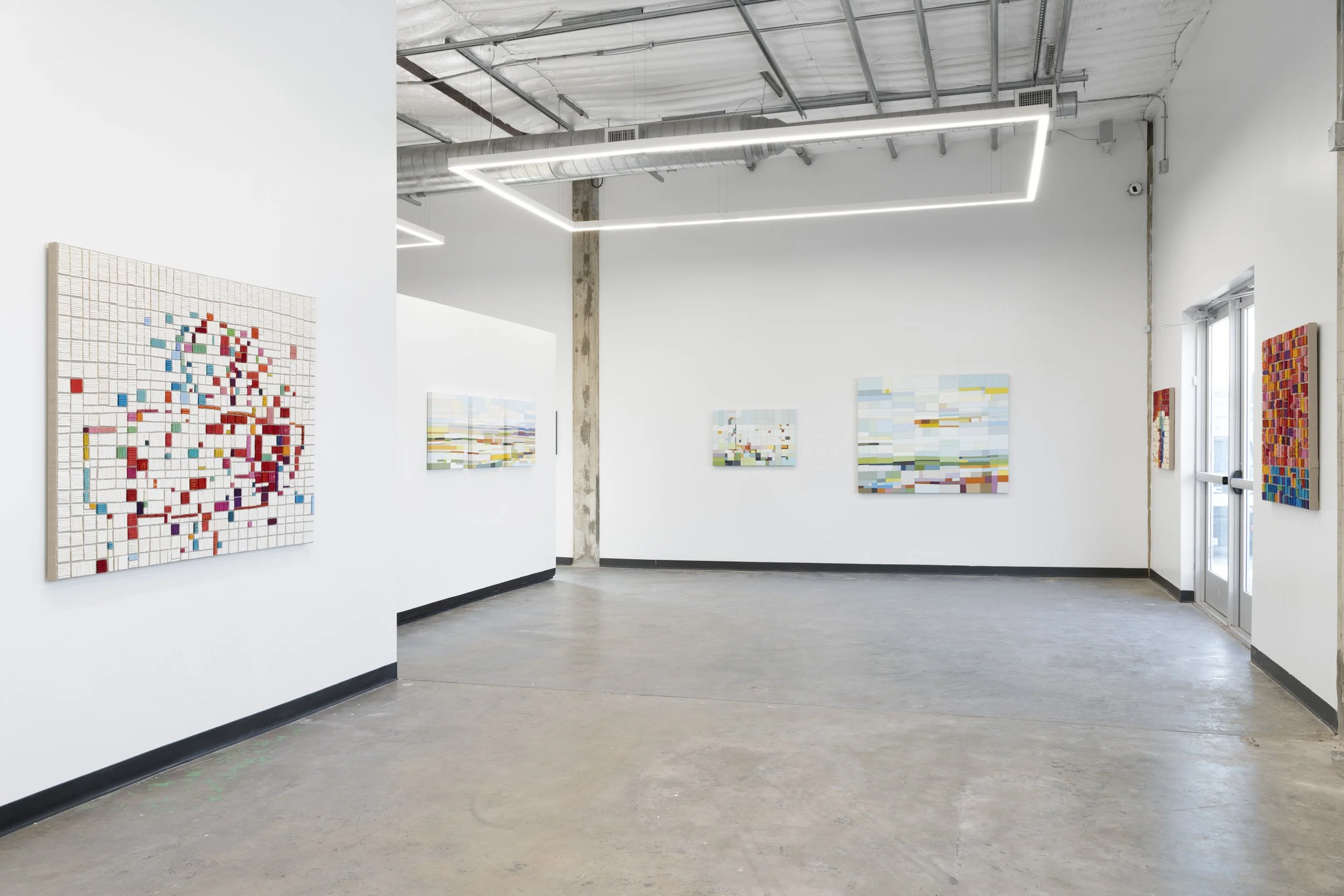 “Meticulously constructed, the works balance softness and precision, with dense, tactile surfaces and carefully calibrated color relationships that reward close viewing.”